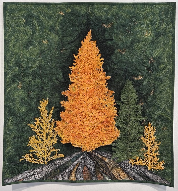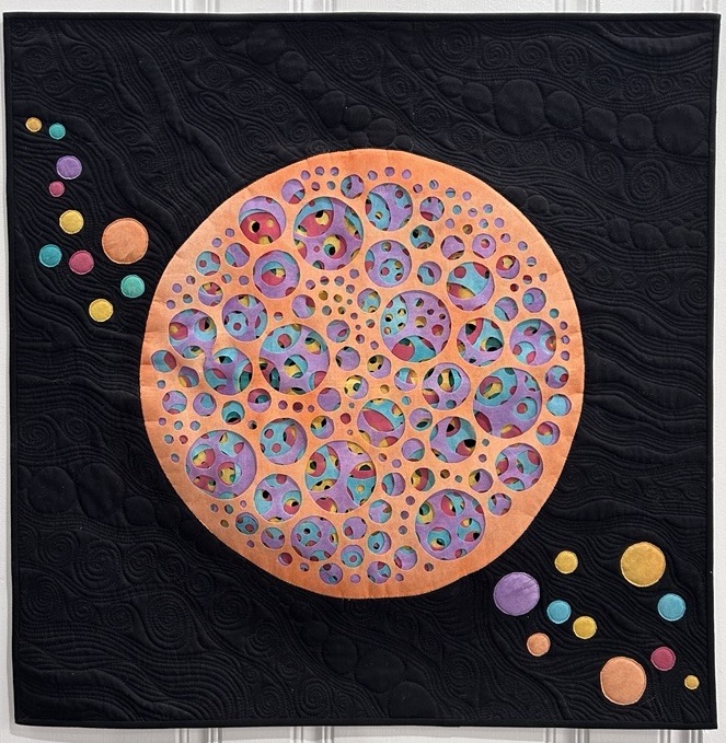 Having grown up with several professional and amateur artists in my family, it was natural that I find a creative outlet. I first explored the artistic potential of the fiber arts over 35 years ago, under the tutelage of quilt teacher Kathryn Watts. While my favorite artist is Georgia O’Keefe, the early art quilts of Nancy Crow and Michael James first introduced me to the possibilities of utilizing textiles in art. Later, the work of my family friend, the late African-American folk art quilter Anna Williams, gave me a new sense of freedom to break the “traditional rules.”