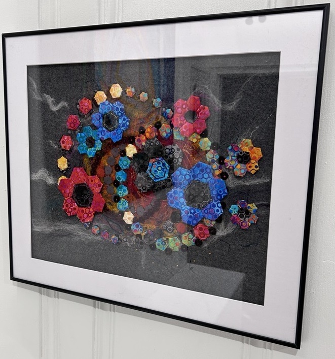The textile art I create today incorporates many of the sewing techniques I learned as a young girl, expands upon those basics, and integrates exotic and interesting fibers, materials, paints, and dyes into each piece. This multitude of fibers and materials has become my paint and my canvas. The tactile qualities of the fibers that I incorporate into my art are essential to my work. The sense of touch is as important to me in the creative process as the sense of sight.