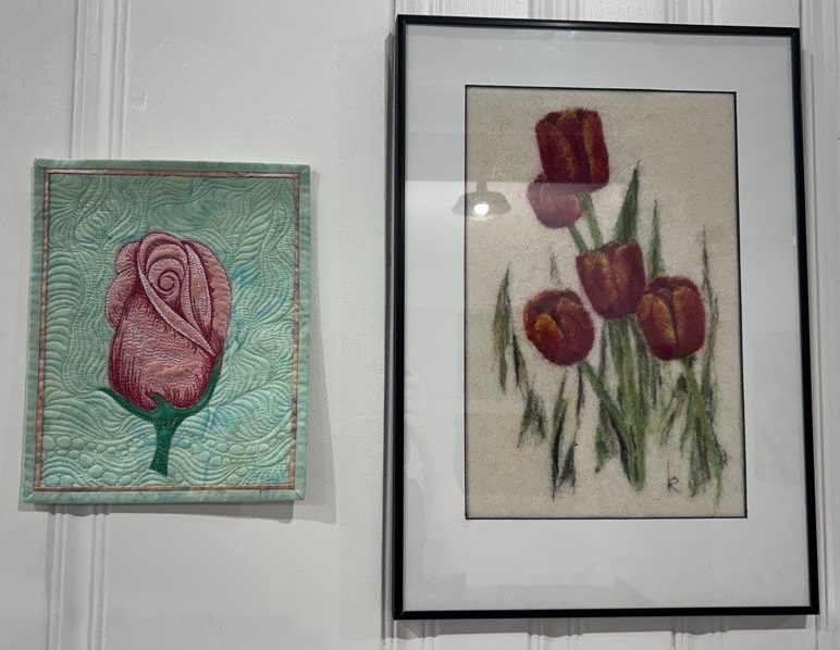 You are invited to view our latest galley show and meet the artists (yes, two!) at a reception in their honor. Friends, Wendy Read and Kathryn Roe, are both fiercely talented fiber artists. Wendy’s works are quilted and stitched layers of magic and Kathryn’s works are felted and stitched pieces of enchantment.
