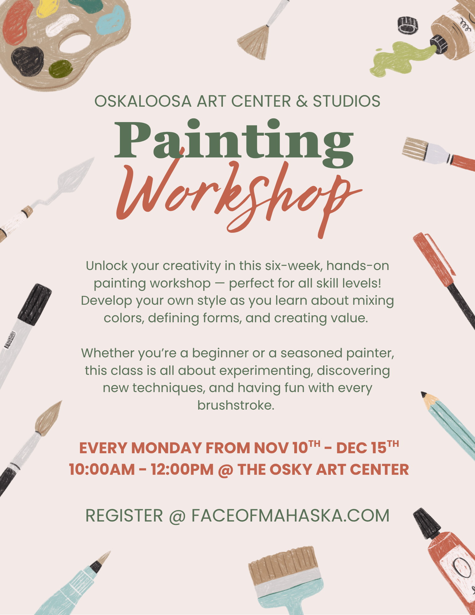 Unlock your creativity in this six-week, hand-on painting workshop — perfect for all skill levels! Develop your own style as you learn about mixing colors, defining forms, and creating value.